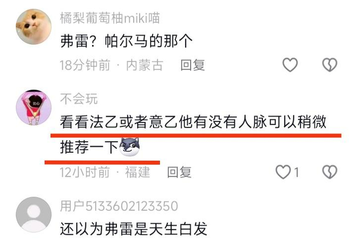 2026年1月23日,前意甲门神、法国门将塞巴斯蒂安-弗雷通过社媒向U23国足门将李昊喊话。一开始,弗雷向李昊问好,随后又对李昊0丢球的表现给予了鼓励,最后还给李昊打气,希望U23国足能够打败日本,拿到U23亚洲杯冠军。据了解,弗雷现在主要负责一些足球商务工作和相关商业赛事,加上他在意大利、法国也有一些人脉,因此这次李昊留洋法乙、意乙的可能性会更大一些。